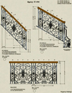 Regency Railings has developed an innovative and patented series of prefabricated hand forged decorative ironwork components expressly for home builders and wood stair companies. You now have the opportunity to offer a custom designed, hand forged iron railing system at a fraction of the cost. This innovative balustrade system is beyond compare. The designs presented within our website were developed to be installed directly into a closed stinger staircase and wooden handrail to eliminate all need for welding. Regency Railings' components are not designed to be installed directly into stair treads. If you are still specifying open stringers, you now have a reason to change. Regency Railings offers components for virtually any staircase, regardless of radius or slope, and any level railing regardless of radius.